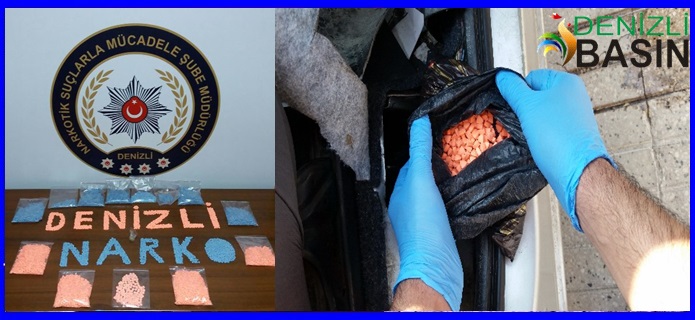 Denizli İl Emniyet Müdürlüğü görevlilerince yürütülen başarılı çalışmalar neticesinde 10.627 adet ecstasy hap, 14.36 gram eroin maddesi, 265 gram esrar maddesi, 23 gram skunk maddesi ele geçirildi.