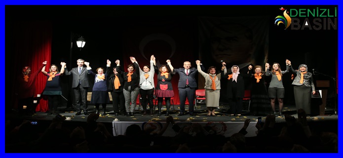 Konuşmanın ardından kadınlar Denizli Büyükşehir Belediye Başkanı Osman Zolan ile birlikte Çatalçeşme Oda Tiyatrosu'na kadar ellerinde dövizler eşliğinde yürüdü. Başkan Zolan burada kadınlara turuncu fular dağıttı. Programda Türkiye'de kadına karşı işlenen şiddet olayları Denizli Büyükşehir Belediyesi Konservatuar Sanatçılarının söylediği türküler eşliğinde Kadın Meclisi üyeleri tarafından tiyatro gösterisi ile anlatıldı. Duygusal anların yaşandığı gösterinin sonunda sahneye davet edilen Başkan Osman Zolan, Kadın Meclisi'ni tebrik ederek gösterinin profesyonelce yapıldığını söyledi. Kadının isterse her şeyi başarabileceğini ifade eden Başkan Zolan, "Kadın bizim annemiz, kadın bizim eşimiz, kadın bizim kızımız, kardeşimiz... Kadın bizim yarınımız, hayata anlam katan tarafımızdır kadınlar. Sebep ne olursa olsun hiçbir gerekçe, hiçbir sebep kadına, çocuğa şiddeti maruz göremez, izahat edemez" dedi.