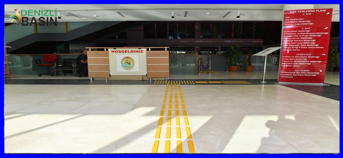 Valimiz Hasan Karahan’ın talimatı doğrultusunda engelli vatandaşlarımızın Denizli Valiliği içinde daha rahat ve güvenli bir şekilde işlerini yapabilmeleri ve ulaşımlarının sağlanması amacıyla yönlendirme bantları yerleştirildi. Görme engelli vatandaşlarımız için ayrıca bina içinde bulunan birim müdürlükleri yönlendirme levhalarına kabartma alfabesi ile yönlendirme yazıları yazıldı.