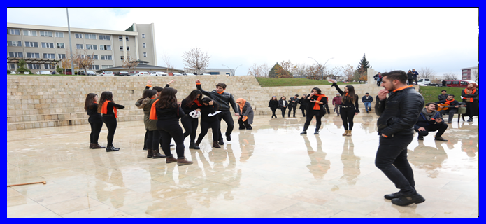 Pamukkale Üniversitesi Eğitim Fakültesi öğrencileri, ‘16 Gün Dünyayı Turuncuya Boya’ etkinlikleri kapsamında yemekhane merdivenlerini turuncu renkli süslemelerle renklendirdiler ve ‘Güldünyalar Ölmesin’ adlı mini bir drama gerçekleştirdiler.