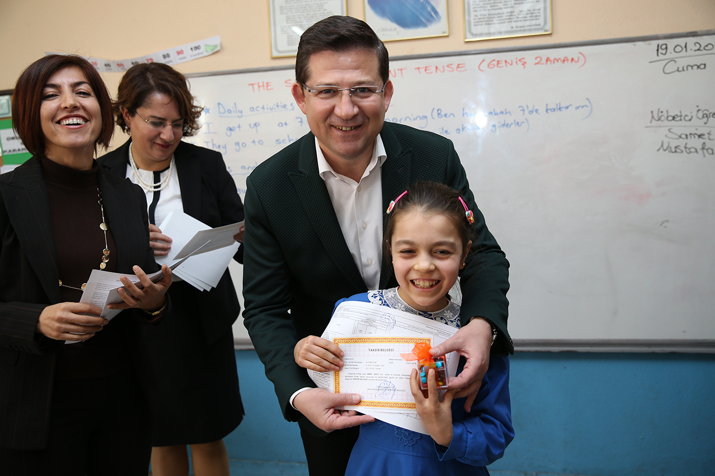 . Başkan Subaşıoğlu, “Öğrencilerimizin yarıyıl tatili öncesi karne heyecanlarını paylaştık. İkinci yarıyıl döneminde tüm öğrencilerimize başarılar diliyorum” dedi.