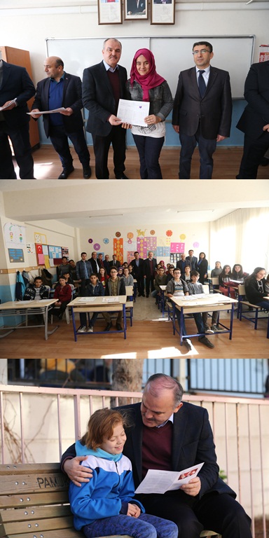 Hacı İbrahim Cin Ortaokulu’nda öğrencilerle bir araya gelerek, yarıyıl tatili öncesinde ki karne heyecanına ortak olan Pamukkale Belediye Başkanı Hüseyin Gürlesin, “Eğitim döneminin ilk dönemini tamamladınız. İkinci yarıyı da sağlıklı ve başarılı bir şekilde bitirip, bundan sonraki yaşantınızda daha başarılı yerlere gelmenizi temenni ediyorum” dedi. Pamukkale Belediyesi olarak, eğitimi önemsediklerini belirterek, geleceğin mimarı olan öğrencilere ve ilçede bulunan tüm okullara desteklerinin her daim devam ettiğini söyledi. Karne töreninde, öğrencilere tatilde oyunlar oynamalarını ancak kitap okumayı da ihmal etmemeleri gerektiğini hatırlatarak, “Hem öğrencilerimiz hem de velilerimiz ve tabi ki öğretmenlerimiz için meşakkatli geçen bir dönemi daha geride bıraktık. Daha da güzel yarınlar görebilmek için yetiştirdiğimiz çocuklarımızın eğitim hayatı çok önemli. Bir ülkenin kalkınmasında ki en önemli temel taşlardan birisi de eğitimdir. Bir anlamda eğitime destek, geleceğe yatırım demek. Bu anlamda Pamukkale Belediyesi olarak, eğitimi önemsiyor ve öğrencilerimize ve okullarımıza desteğimizi her daim sürdürüyoruz. İlçemizde 128 okulumuzun tamamına ulaşarak fiziki ihtiyaçlar başta olmak üzere eksikliklerin giderilmesi anlamında ciddi destek sağlıyoruz. Hem okullarımıza, hem öğrencilerimize ve ailelerimizin yanında yer alarak, destek olarak, yarınlarımıza yatırım yaptığımızın bilincindeyiz. Öğrencilerimize eğitim yardımından, kırtasiye desteğine, okullarımızın dış cephe onarımlarından, halı sahalara, konferans salonlarına kadar ve birçok malzeme eksikliklerini tamamlayarak önemli destekler sağlıyoruz” diye konuştu.