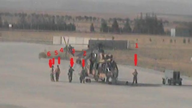 Fotoğraflara, yakıt ikmali yapılan Cougar tipi iki helikoptere mühimmatların yüklenmesi ve üstten ayrılması yansıdı