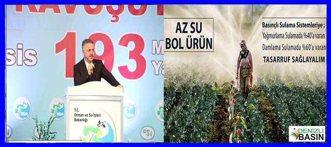 Ülkemizde ki suyun 40 milyar m3’ünü (%74) sulamada,- 7 milyar m3’ünü (%13) içme-kullanma suyu, - 7 milyar m3’ünü (%13) sanayi suyu ihtiyacını karşılamada kullanılmakta olduğunun altını çizen DSİ Genel Müdürü Murat ACU,’ Basınçlı borulu şebekelerin yapımının artırılması ve klasik yöntemlerle sulama yapılan eski sulamaların rehabilite edilmesi ile sulamada kullanılan %74’lük su oranının düşürülmesini hedeflemekteyiz.