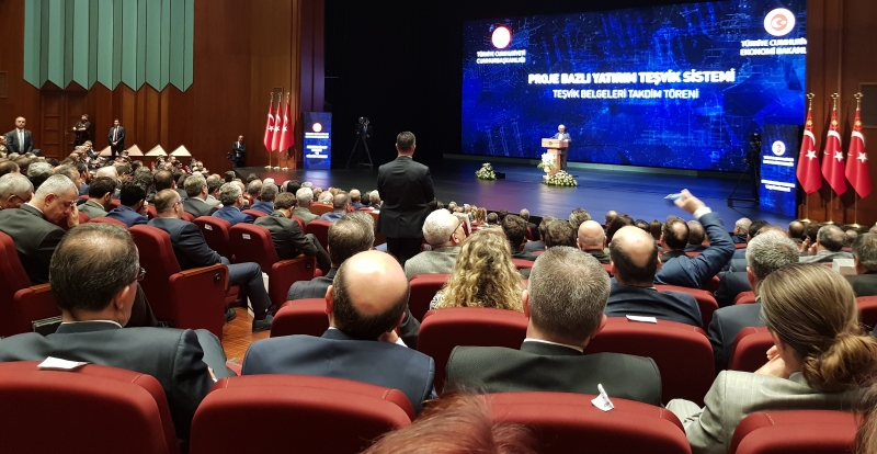 Beştepe Millet Kültür ve Kongre Merkezi'ndeki Proje Bazlı Teşvik Sistemi'nin Tanıtımı ve Teşvik Belgesi Dağıtım Töreni'ne ev sahibi Ekonomi Bakanı Nihat Zeybekci'nin yanı sıra Cumhurbaşkanı Recep Tayyip Erdoğan ve Başbakan Binali Yıldırım da katıldı. Cumhurbaşkanı Recep Tayyip Erdoğan, Proje Bazlı Yatırım Teşvik Sistemi ile cari açık sorununu kökten çözme iradesini ortaya koyduklarına inandıklarını söyledi.