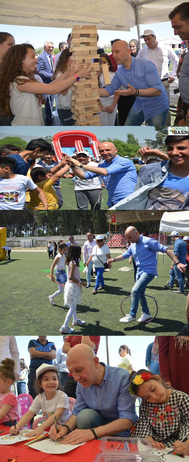 Sarayköy Belediyesi tarafından 23 Nisan Ulusal Egemenlik ve Çocuk Bayramı dolayısıyla düzenlenen Çocuk Şenliği’nin bu yıl 5.’si gerçekleştirildi. 90’lı yılların oyunları ile günümüz oyunlarının bir araya geldiği şenlikte Sarayköy Belediye Başkanı Ahmet Necati Özbaş, miniklerin coşkusuna ortak oldu, onlarla oyunlar oynadı.