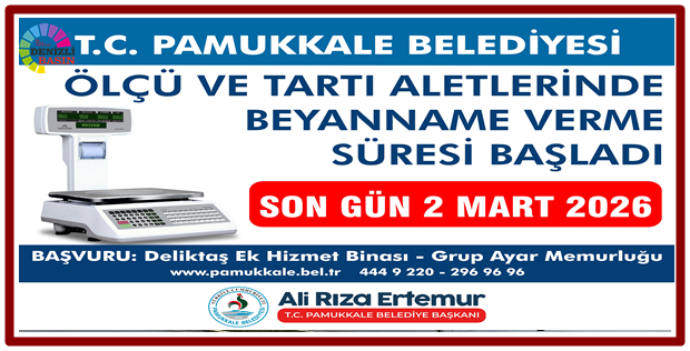 T.C. Pamukkale Belediyesi, ilçe genelinde faaliyet gösteren esnaflara yönelik önemli bir hatırlatmada bulunarak; ölçü ve tartı aletlerinin periyodik muayene ve damga işlemlerinin yasal bir zorunluluk olduğunu bildirdi. Belediye tarafından yapılan açıklamada, ölçü ve tartı aletlerinin iki yılda bir periyodik muayeneden geçirilmesi gerektiği, damga süresi dolan aletler için ise 2 Mart 2026 tarihine kadar müracaat edilmesinin zorunlu olduğu belirtildi.