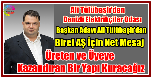 Denizli Elektrikçiler Odası Başkan Adayı Ali Tülübaşlı, seçilmeleri halinde öncelikli gündem maddelerinin uzun yıllardır tartışma konusu olan Birel AŞ’yi yeniden işlevsel hale getirmek olacağını açıkladı. Tülübaşlı, şirketin üyelerle çatışan değil, kaynaklarını doğru kullanarak üyeye gelir sağlayan bir yapıya dönüştürüleceğini vurguladı.