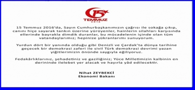 Denizli Büyükşehir Belediye Başkanı Osman Zolan, 15 Temmuz Demokrasi ve Milli Birlik Günü dolayısıyla anma mesajı yayımladı.